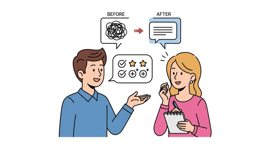 Structure your thoughts: Use simple frameworks (e.g., Problem → Solution → Result) to stay clear and focused.